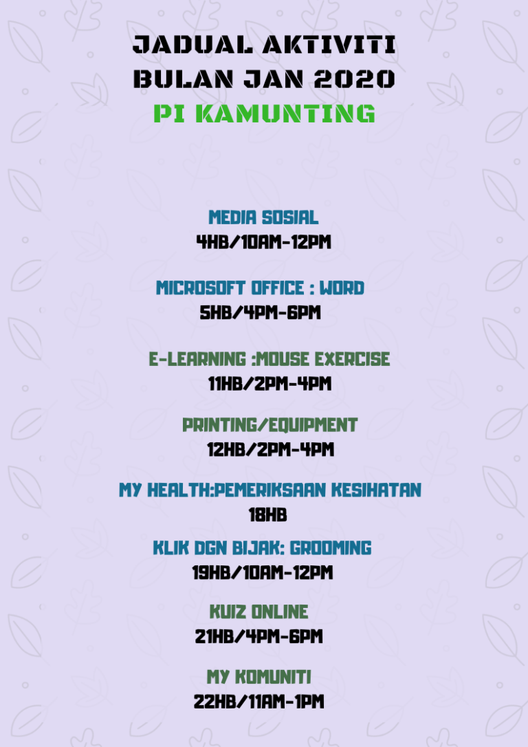 Jadual Aktiviti Bulan Januari 2021