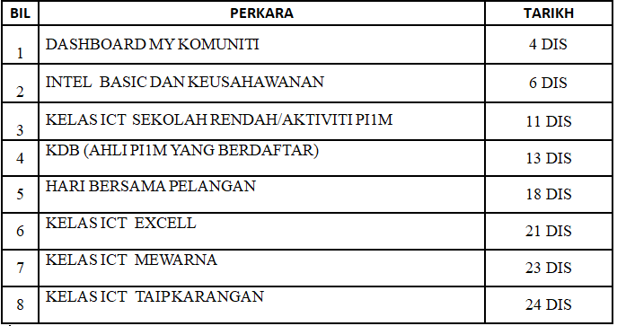 JADUAL AKTIVITI BULAN DISEMBER 2017