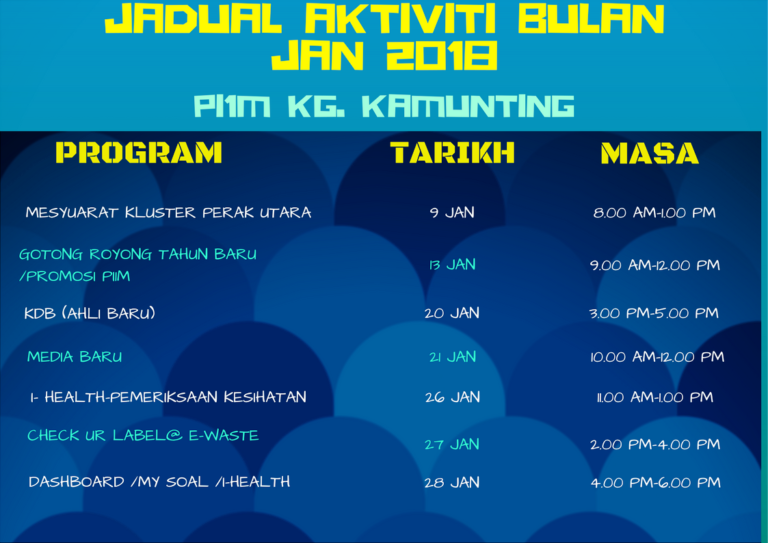 JADUAL AKTIVITI BULAN JAN 2018