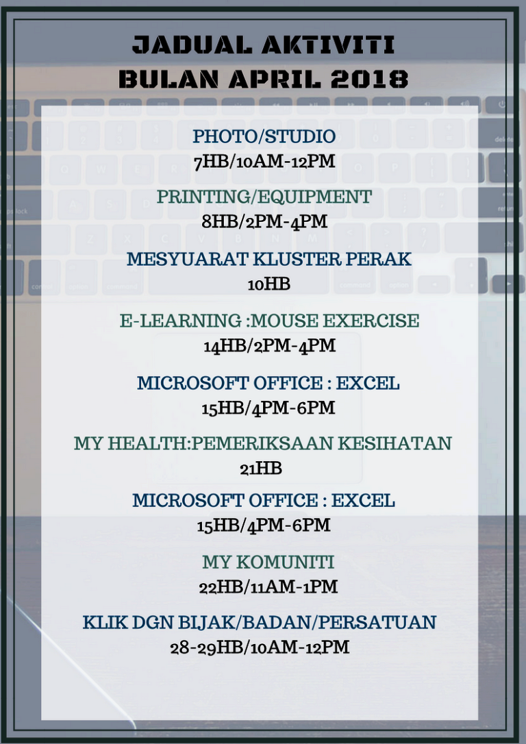 Jadual Aktiviti Bulan April 2018